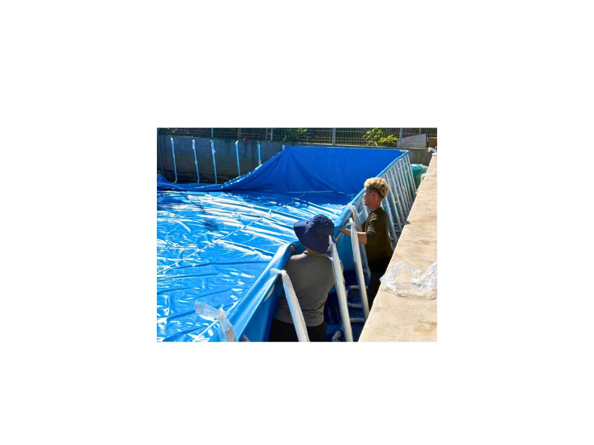 Bước 3: Lắp đặt khung bể, căng bạt và hoàn thiện kết cấu bể bơi.