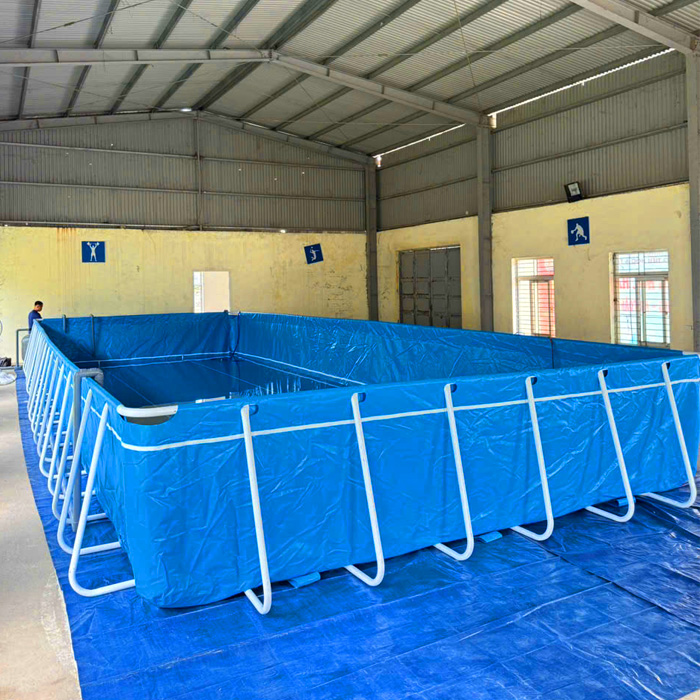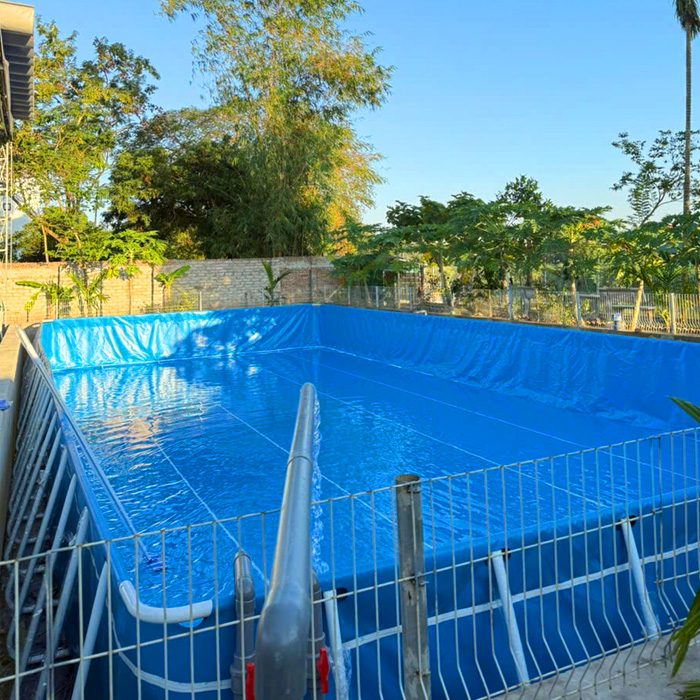 Bể bơi có kết cấu chắc chắn, mặt bạt PVC dày, an toàn – hoàn toàn phù hợp học sinh. Hệ thống lọc nước vận hành êm, đảm bảo độ trong, giúp giáo viên dễ quan sát và quản lý học sinh trong quá trình dạy học.