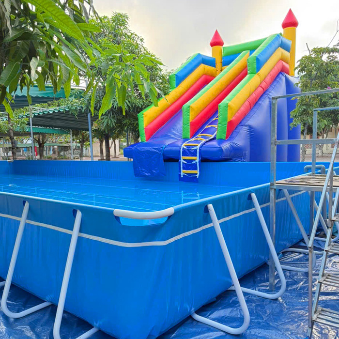 Bể bơi di động (bể bơi lắp ghép) là loại bể sử dụng khung thép mạ kẽm kết hợp bạt PVC chuyên dụng có thể lắp đặt trực tiếp trên nền sẵn có mà không cần đào móng hay xây dựng cố định.