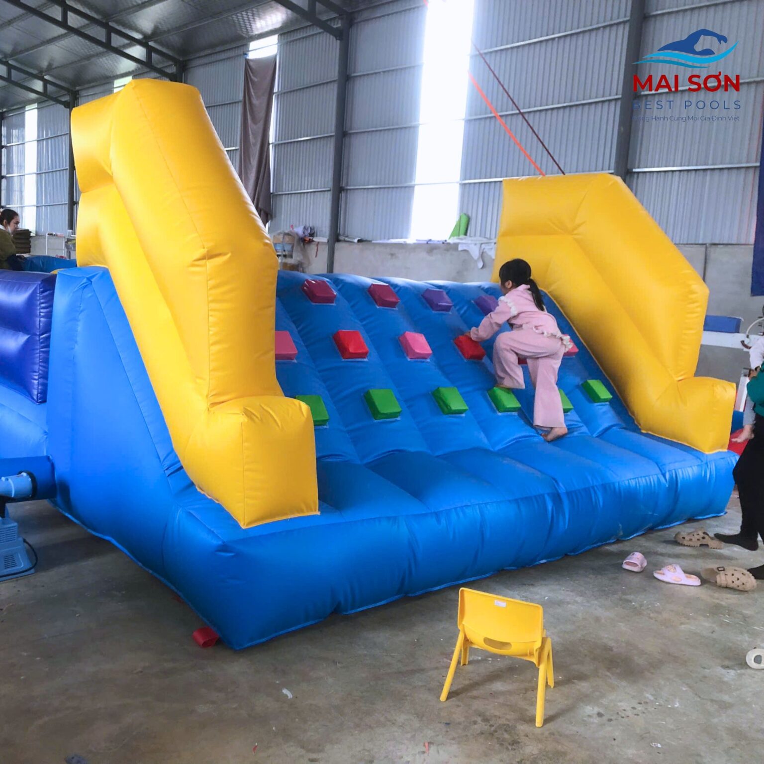✅ Thiết kế hấp dẫn: Gồm khu vực leo núi hơi với tay nắm chắc chắn, hai đường bóng hơi khổng lồ tạo thử thách giữ thăng bằng và khu vực trượt an toàn.
